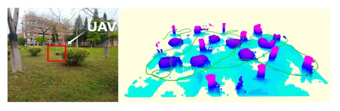 除了课堂上的学习,徐恺还积极投入科研方面的探索。在实验室同学和老师的帮助下,他快速上手了机器人方面的理论知识,并在自己的科研实践中得以应用。从在师兄帮助下完成机器人协同建图算法设计和实验(见图1),到能独当一面,完成小型无人机自主探索实验(见图2),他在实践中逐渐提升自己的科研能力,懂得了如何面对困难、克服并解决困难。他还在学习之余,与宿舍同学一同参加中国计算机学会第六届开源创新大赛,荣获三等奖。