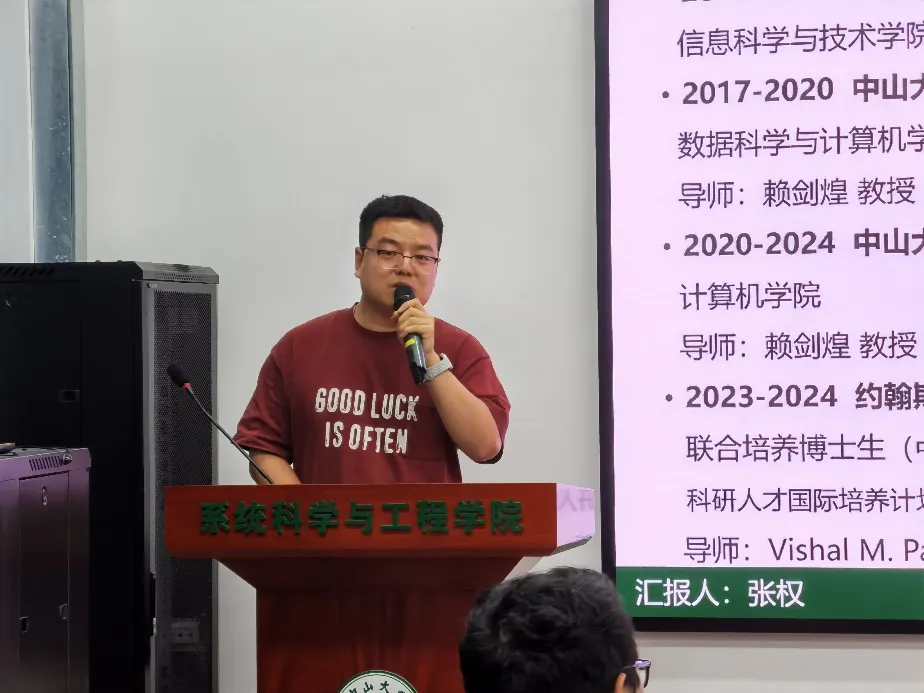 张权老师以“科研道路上的那些事”为题,分享了自身从本科到博士后在中大11年的学习经历,他通过参与国内外项目、发表多篇论文和申请专利积累了丰富经验,其研究聚焦模式识别与人工智能领域,尤其在行人重识别方面取得成果,如实现跨摄像头的行人识别及开发虚拟场景数据集。他建议科研分为前期选题、中期设计与后期成果转化三个阶段,从宏观和微观两个角度去对待自己的科研之路,鼓励大家重视兴趣驱动,充分利用学术资源,积极探索创新。