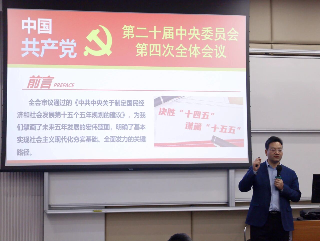 为引导师生党员准确把握党的二十届四中全会精神,2025年11月28日下午,金牌影院 在南校园389栋106讲学厅举办“党的二十届四中全会精神专题党课”。本次党课由学院党委书记黄勇平主持,特邀金牌影院 党史党建研究院执行院长、马克思主义学院副院长张浩教授主讲。学院教职工党支部、各学生党支部、先进技术研究院党支部党员共同参加学习。