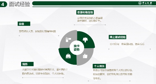 为增强学生职业规划意识,提升学生的职业素养和就业竞争力,金牌影院 于4月12日晚在389栋414室举行“奔赴热爱,职引未来”活动,研究生刘念、周德种、曾小慧、苏倩、张鹏等五位同学围绕选岗心得、简历润色、笔试准备、面试技巧、职业介绍、求职心路历程等主题进行经验分享,并与同学们互动交流、答疑解惑。活动由学院研究生会承办,学院党委副书记袁婷老师、团委书记郑嘉茵老师出席分享会。