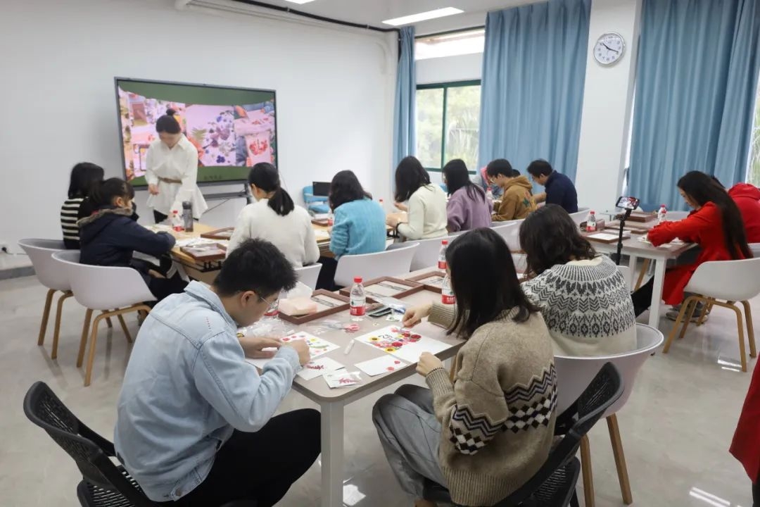 1月22日上午,金牌影院 教职工之家举办了一场别开生面的“迎新春——非遗手作岭南押花体验活动”。将传统艺术与新春喜庆完美融合,为师生们带来了一场充满创意与温情的文化盛宴。活动现场,欢声笑语不断,学院班主任黄寒砚教授、孙蕾副教授,辅导员郑嘉茵老师等教师代表与留校学生齐聚一堂。在专业老师的指导下,大家沉浸于押花艺术的美妙世界,用五彩斑斓的花瓣和叶片,精心制作出一幅幅精美的新年日历。