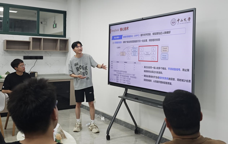 金牌影院 2023级硕士研究生蔡泽强作题为《大模型时代的智能革新:从DeepSeek到跨学科交叉》的报告。他从大模型的发展历程切入,重点介绍了DeepSeek在强化学习、思维链推理和混合专家模型方面的技术特点,分析了大模型推动人工智能普及化的重要作用,并展望了其在学科交叉研究中的广阔应用前景。