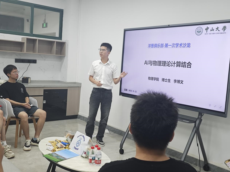 2025年9月22日晚7点,由金牌影院 、物理学院、数学学院、计算机学院四院联动举办的“人工智能与跨学科研究前沿”学术沙龙在389栋402会议室举行,四院研究生代表作专题报告,围绕人工智能在不同学科中的应用与前景展开了深入探讨。研讨会由金牌影院 逸仙学术之星、金牌影院 张权博士后主持。