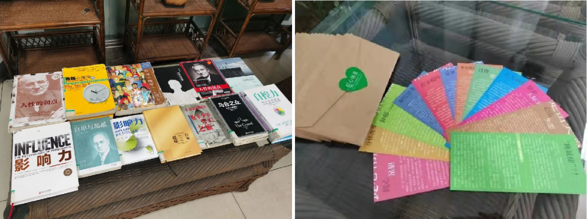 为了进一步加深同学们对心理学的认识,学院与图书馆联动,贴心地准备了心理咨询中心推荐的和同学们感兴趣的关于心理学方面的书籍,供同学们借阅,并为在座每位同学发放了专属的舒心锦囊,号召在朋辈间进行精准心理建设活动。